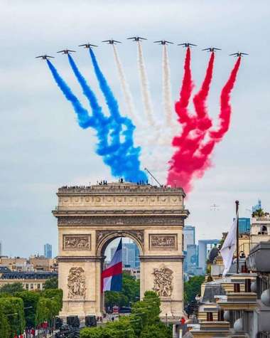 Défilé du 14-Juillet : la patrouille de France ouvre le défilé aérien et survole le ciel le Paris.