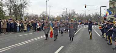 Ziua Naţională a fost marcată luni, la Timişoara, printr-o scurtă defilare, fără tehnică de luptă, dar la care au fost prezenţi, pe lângă militari, jandarmi, pompieri şi poliţişti, ansambluri folclorice, şi reprezentanţi ai Asociaţiei de Reconstituiri Istorice care au prezentat un drapel vechi de peste 100 de ani.